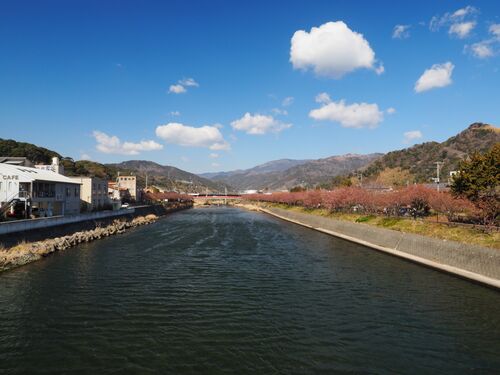 伊豆熱川・地蔵菩薩、 今井浜海岸・蛭子神社・龍王神社を見てきた。 そして歩いて、河津海岸までやってきた。 河津桜並木の始点である、観光客が散策しているのが見える。