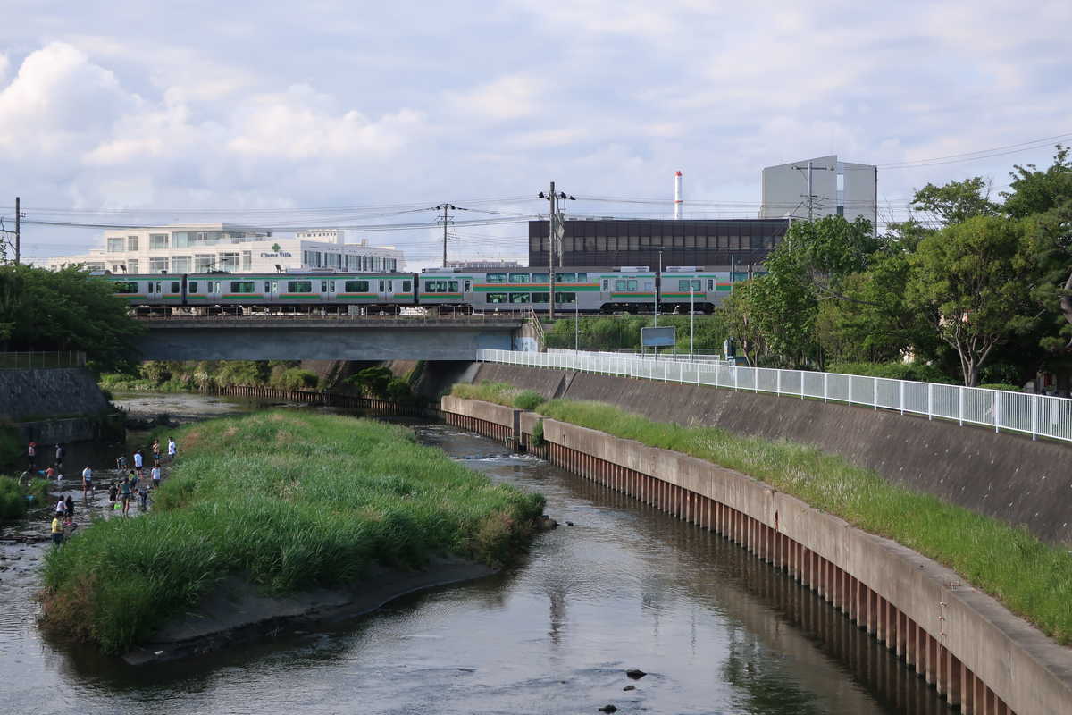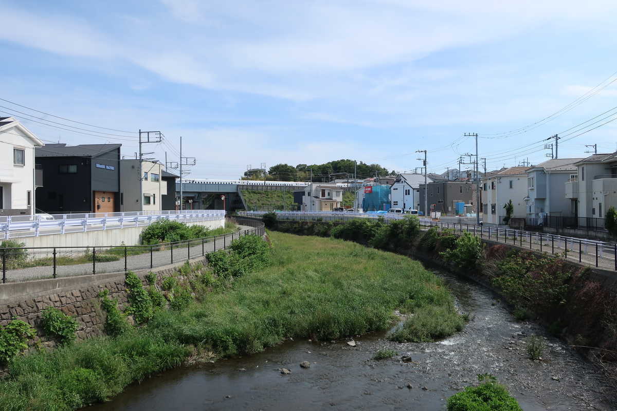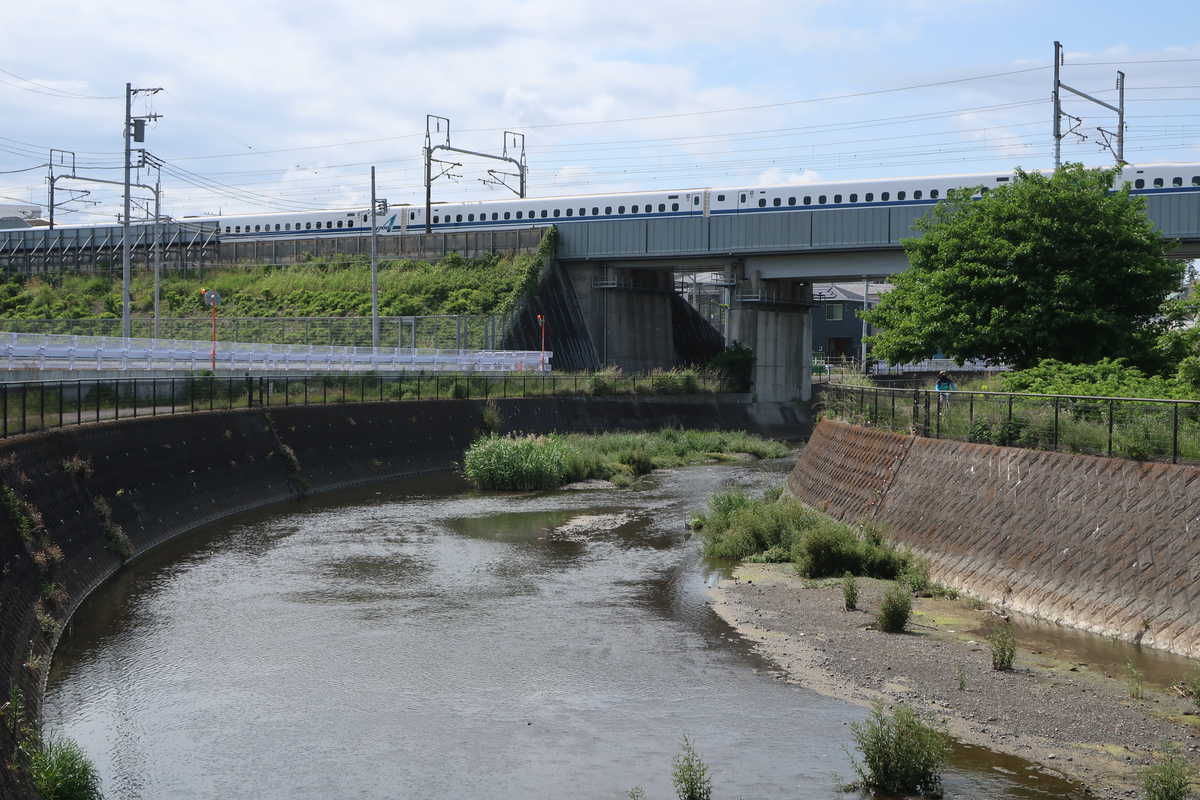 新幹線は新横浜駅を出ると、帷子川、境川、引地川と通過していく、これらは車窓から比較的見やすい川であり、それ以外にも和泉川などもあるけど、これはわかりづらい部類と思われる。