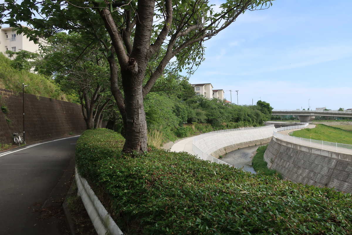神明橋(高座渋谷駅近く)に来ると川幅は一気に広がった、両脇にはアスファルトの舗装道路があり、自転車としてはとても走りやすい道となっている。