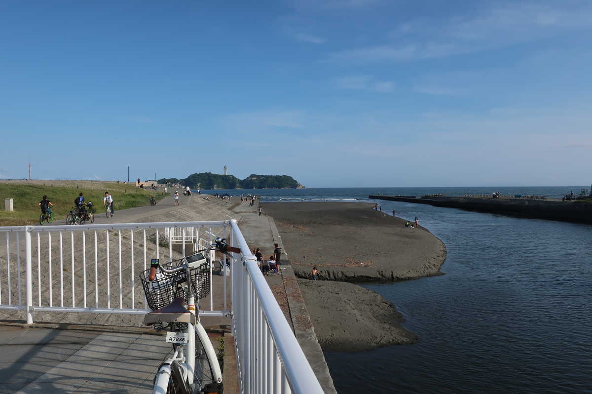 最後の難関(難関ではない)の鵠沼橋を渡り、海側へ到達!