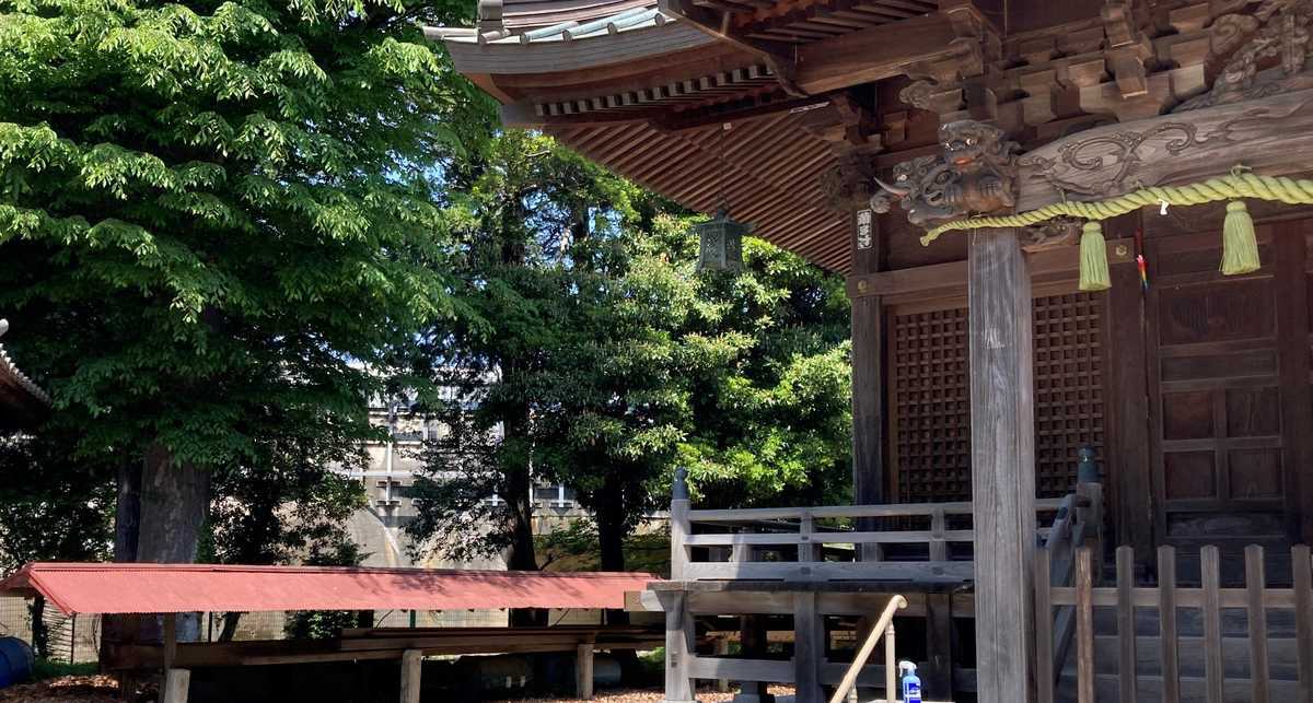 神社の裏には新幹線が走っており、今も通過している(見づらいけど)