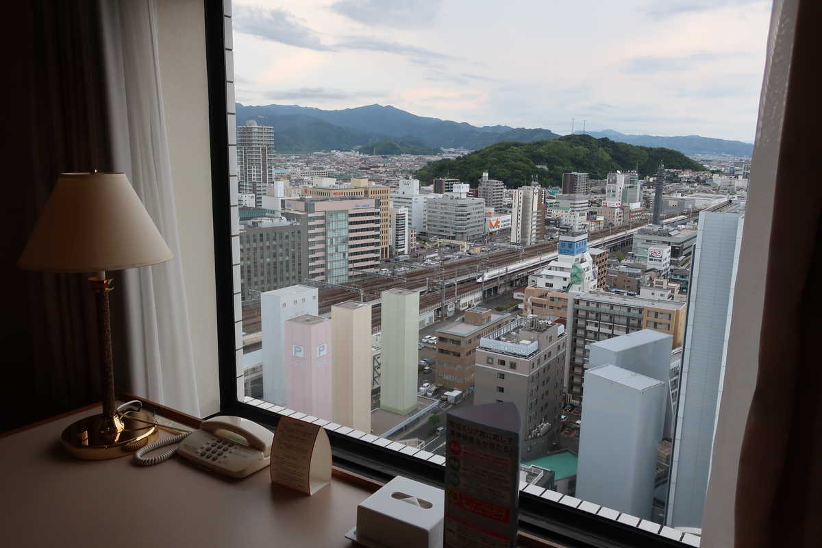 静岡駅の両サイドにある2大ホテルのうちの1つ、グランヒルズ静岡に泊まりました、そこから眺める景色は圧巻だった!
