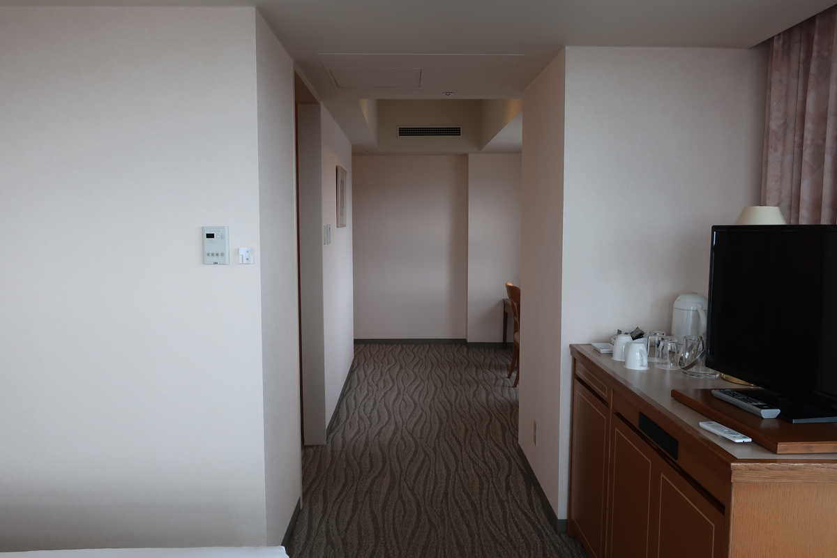 ここはコーナールームであり、大きな窓が飛び込んでくる! こちらはパノラミックデラックスダブルという客室、ここからの景色は後ほどご紹介します。