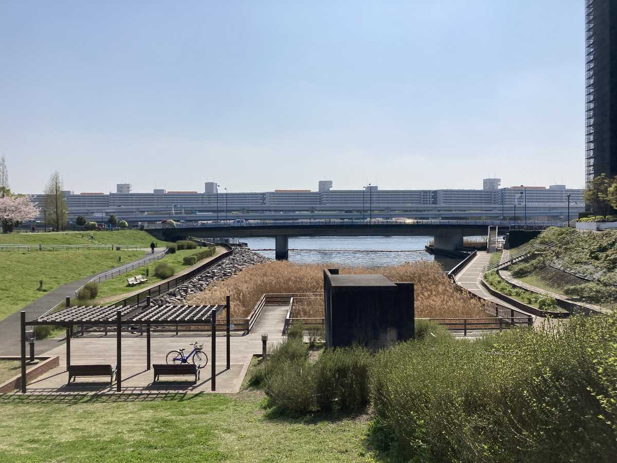 このエリアは「汐入公園」という名前らしい、遊歩道がしっかりと整備されており、さらに下へ降り、隅田川横も歩くこともできる。